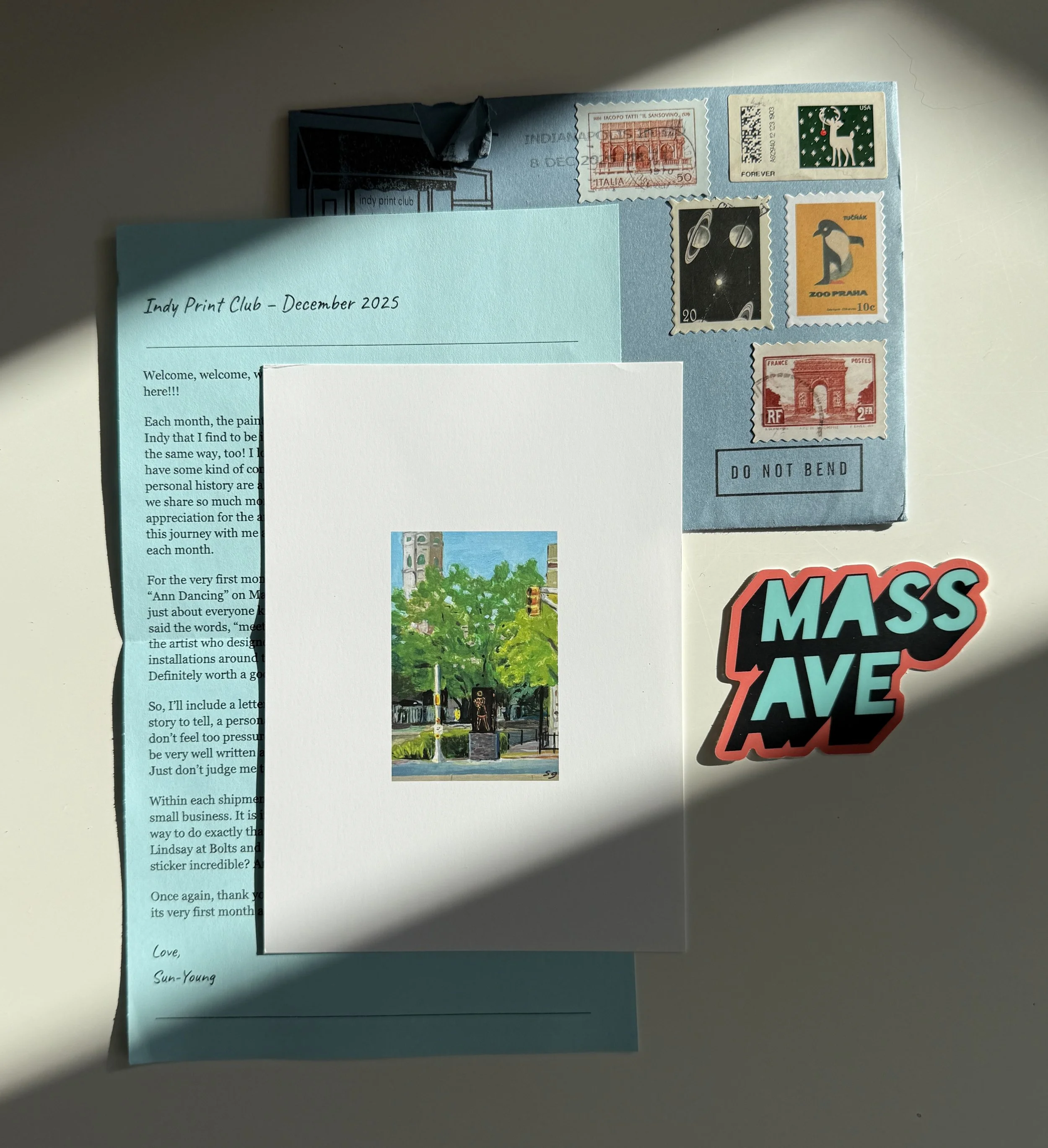 The Indy Print Club is a monthly surprise from my studio to your mailbox.